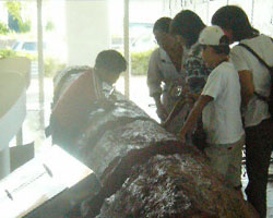 さあ、生命の海科学館でキミもギョリュウと握手!