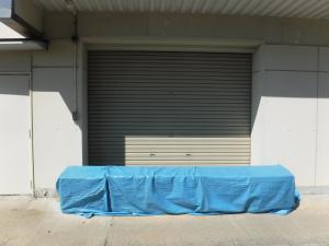 ブルーシートを下に敷き、水を入れたポリタンクを並べます。
