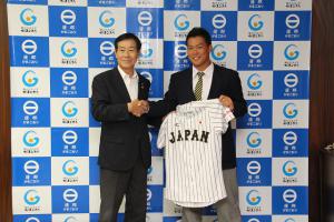 夏の甲子園や18歳以下の野球ワールドカップで活躍した、中京大中京高校3年の伊藤寛士君が大竹校長先生とともに訪れ、試合を振り返るとともに、今後について語ってくれました。法政大学進学予定の伊藤君を市長は「(野球が競技種目に加えられたら)東京オリンピック日本代表としての活躍を期待します。」と激励しました。