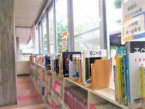 児童室では毎年、夏期に「読書感想文におすすめの本」を集めた特集コーナーを設けています。本の表紙には、おすすめのコメントも付いています。