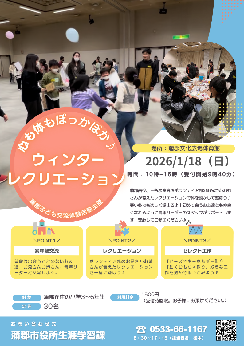 蒲郡子ども交流体験活動 心も体もぽっかぽか ウィンターレクリエーション参加者募集!