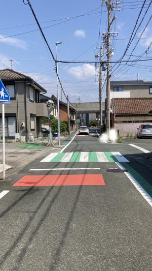道路の交通安全対策のため、カラー舗装工事に活用させていただきました。